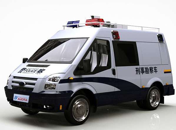 根據公安部門對刑事案件現場勘查工作的需求,具備強光照明、警示、供電、視頻采集、專網通訊、廣播和現場辦公等多種功能,并可根據實際需要實現模塊化、個性化功能定制,加裝其他功能設備,充分滿足刑事勘察等多種警務工作的需要。車內分為三個區域,從前往后分別為駕駛區、操作區和裝備區。駕駛區設計有倒車監控顯示器和警燈警報的控制手柄等;辦公區設計有操作臺、汽車座椅、電腦、辦公一體機和設備機柜等;裝備存儲區設計有鋁型材裝備架,用于放置現場勘查所用的裝備。