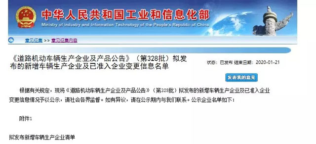 2020年1月15日顯浩正式通過了國家工信部新増專用車生產企業準入審查!獲得了專用車生產企業的準入資質。其審查結果一并發布于《道路機動車車輛生產企業及產品公告》(328批)上。