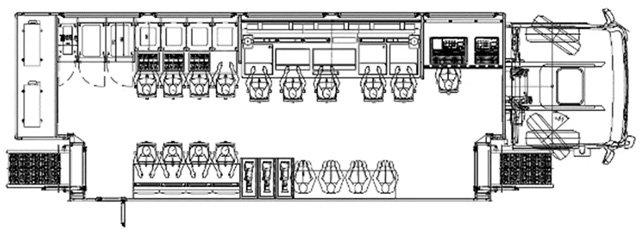 這種類型轉播車常配備8~12訊道;作為4K轉播車,導演區通常只能放6塊大屏,且多為單側拉,側拉深度一般在1.2~1.5米。當然根據用戶使用需求也有不帶側拉和雙側拉的,雙側拉時要留意超重的風險。