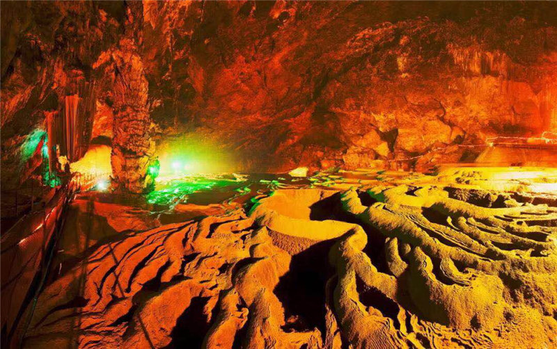 進入黃仙洞后,只見洞內奇石異景、百態紛呈,特別是2萬平米的邊石池、形似梯田,是黃仙洞最具特色的地方,大家被眼前的景觀深深吸引,情不自禁折服于大自然的鬼斧神工。