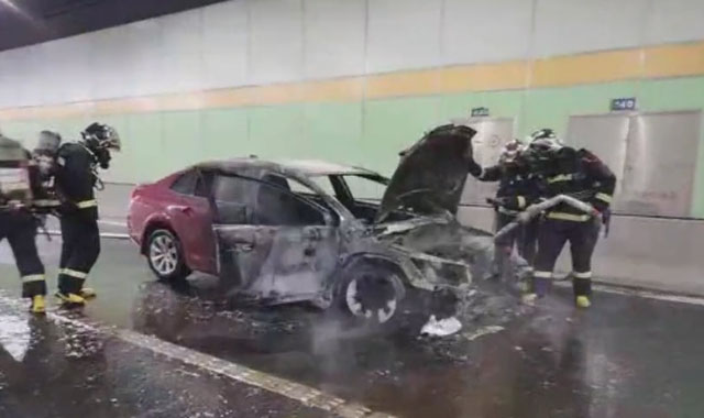隧道內轎車自燃,情況危急!先導處置車攜手消防員逆行救援。天氣炎熱,風高物燥??諝鉂穸群艿?,很容易發生火災。這時突發緊急情況,隧道的一輛小轎車發生了火情,自燃了。時間緊迫先導處置車第一時間趕到現場進行處置。因為隧道比較狹窄,又是下班的完高峰期。自燃導致了高速車輛大排長龍。消防車比較大開到隧道口就沒辦法往前開了。為了讓消防車盡快到達現場滅火。先導處置車的人員在指揮交通秩序。搭載消防隊員進隧道滅火。很快現場明火被撲滅,自燃車輛被拖離。經多先導處置車部門聯動處置,快速消除車輛燃爆險情,交通恢復正常。