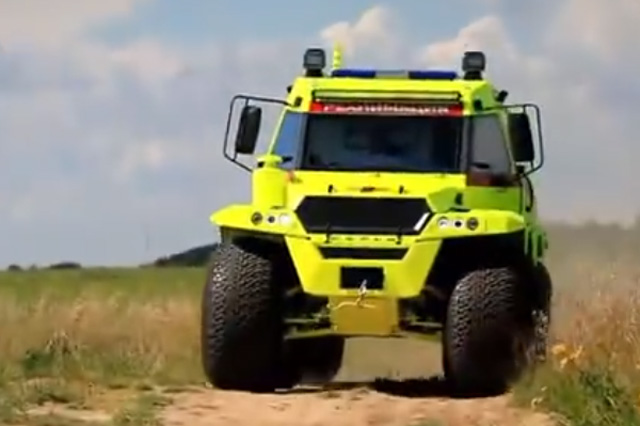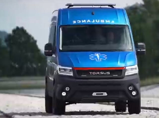 TORSUS TERRASTORM,捷克共和國制造的快速高機動性的車輛,它設計是用于道路的崎嶇山區使用。可以有水或者泥濘的地形下面穿越危險區域??梢园踩竭_偏遠地區把病人送到醫院救治。車輛長6米,總重量有3.5噸。搭載了176馬力的發動機。扭矩410牛米,配備自恢復絞盤。穿越80厘米深的區域,續航里程830公里。