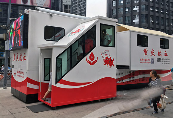移動獻血屋有什么特點呢?它是有輪子的,借助拖掛車牽引過來即可。商店應急電源設備等,以保證機艙內的空調,血液存儲設備的正常運行。還有就是,在獻血屋的前面,有一個應急窗口,遇到一些問題需要取血或緊急情況時候,可以更加迅速地在這里處取出。這種更加寬敞的移動獻血屋,能給獻血者提供更好的獻血服務。獻血屋有一個相對獨立的分區,它也配備了更好的設施,無線網絡,將提供一個更舒適的環境和更好的獻血者獻血經歷。