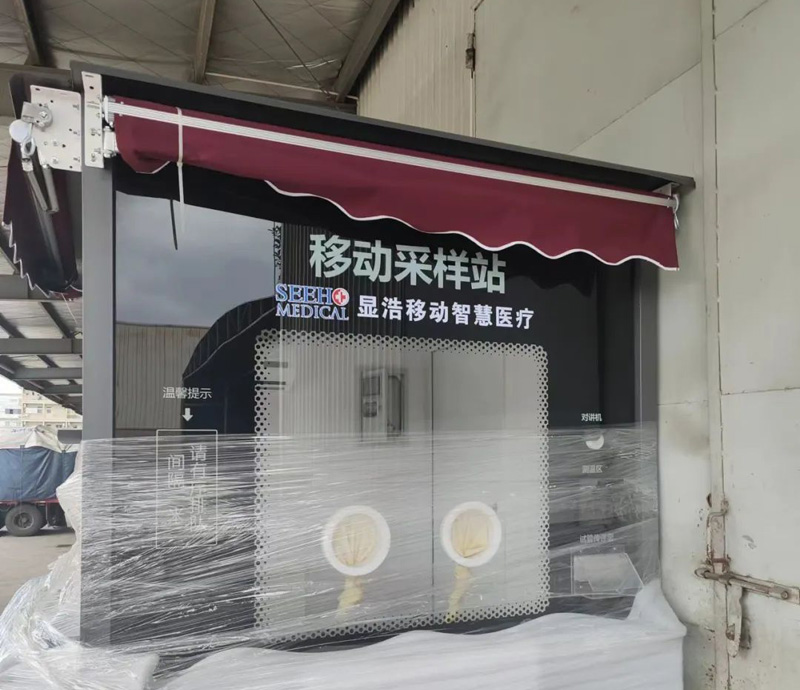 湖北顯浩運營總監蔣存金向大家介紹了此次捐贈的百變多功能核酸采樣亭是公司員工加班加點趕制完成,其中兩臺已先期發往海南,8月31日啟運的兩臺將發往西藏。百變多功能核酸采樣亭配置齊全,包含有自動對講、測溫等裝備,安裝了新風空調系統,可以保證采樣亭內工作環境的零污染。它還可以與移動核酸檢測車實現遠程連接,進一步提高工作效率。核酸采樣亭可以在完成采樣工作之后,把它轉化為執法亭、早餐售賣點、休息室等形態,繼續發揮作用。