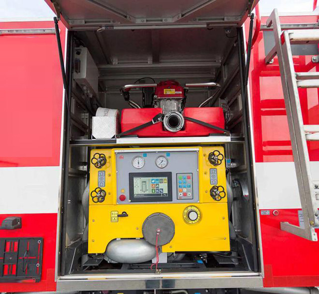 消防供水車:GB7956.2 這個執行標準。經久耐用、抗腐蝕。有消防泵跟大容量水槽。只要用于滅火供水救援任務。它的重要特點是儲水量非常大可以滿足大面積的用水要求。它還根據底盤的不同,有半掛式跟整車消防供水車型。結構跟水罐消防車差不多。但是消防供水車的容量更大,水路系統比較簡單。結構合理、造型美觀。出水口壓力低。不過水流量大所以消防供水車一般配備低壓、大流量吸深大的消防泵。供水消防車的水路系統無水炮出水管路,車體兩側設置器材廂,隨車配備水帶、結構、集水器、分水器、消火栓扳手等附件及工具。