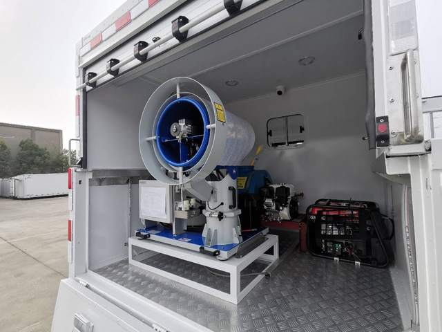 防疫消殺車穿梭各個居民小區,地下停車場,學校,工廠等多地地方,所到之處全面消殺不留死角。專業的防疫設備,防疫消殺車罐體有效容積大,一次作業周期長,工作效率高自帶發電機,有噴霧靈活機動,可以覆蓋更廣的射程。特別是相比傳統的人工防疫消殺更專業不漏任何位置。特別是陰暗地方和不方便人工作業的場地開展。全面、細致地消殺。消殺車的自動化噴灑大大降低了環衛工的勞動作業強度,并限度的減少身體與的消毒水的接觸,可以讓工作人員的身體更健康。為了確保消毒沒有死角,消毒隊使用防疫撲殺車配備的小型噴霧器,配合人工操作,對細菌、蚊子易滋生的地區進行了全方位消毒。利用防疫消殺車高效能作用,防止疾病傳播,最大限度地降低疾病發生發展風險。