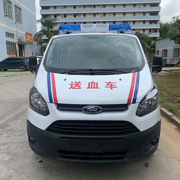 江鈴福特新全順V362送血車,該車以江鈴福特新全順V362為基礎車型進行改裝,外部尺寸為5341×2032×2066/2407mm、內部尺寸為2300/2700×1700×1700mm、柴油發動機、德國PUMA動力系統、2.0L排量、最大功率90kw、進口手動5擋變速箱、前置后驅、麥弗遜式/板鋼彈簧懸掛系統、最高時速156公里、最大載客人數9人。