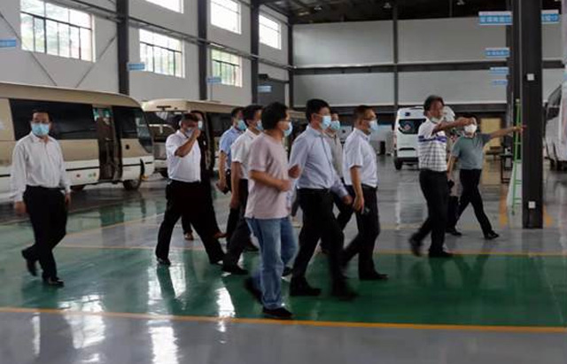 市領導們逐一參觀了正在生產中的醫療體檢車、救護車、移動核酸檢測車和移動P2實驗室四款車型,我司技術人員向領導們介紹了不同車型的使用場景和功能。