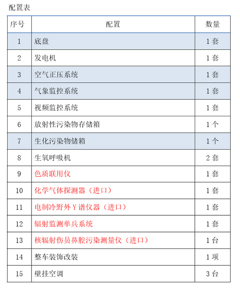 核化應(yīng)急監(jiān)測車配置