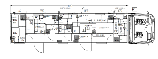 移動核酸檢測車按功能可分為試劑準備區、樣本制備區、擴展分析區、消殺區和設備間。