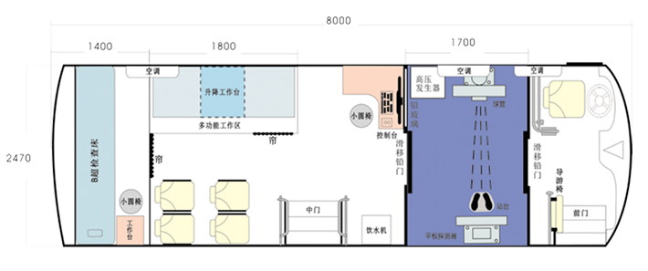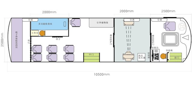 DR體檢車立鉛防護室,把DR鉛防護室安裝體檢車中心,圖像數字化處理成像準確。比醫(yī)院的科室DR便捷,而且有相當不錯的抗震效果,在生產DR車的時候,考慮到車載DR較科室DR功率略小,在體檢車上定制車載DR能高效完成放射類體檢項目。其放射X劑量少很多,也讓移動體檢車在行駛過程中更安全。采用三層以上噴涂噴砂技術、防銹防腐、光亮鈀漆技術。