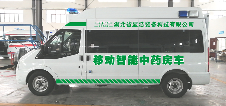 顯浩公司可以改裝各種用途的特種專用車,移動中藥房車就是其中一款熱門改裝車型。福特V348底盤為基礎的XHA5040XYL07型醫療車智能移動中藥房車集成了自動發藥系統、應急供電系統、應急廣播系統等,能夠執行移動醫療、防控宣導等任務。具有獨立工作,高效,空間小等眾多優點。