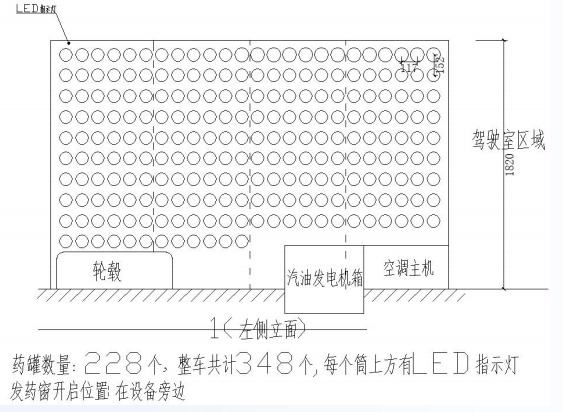 藥瓶柜采用車內一體式設計,開模定制按藥瓶φ91mm設計,藥瓶放入藥瓶桶后露出底部平面30mm(便于取放)。每個藥瓶桶有LED指示燈,采用燈帶的安裝方式。藥瓶桶的左右中心距離117mm,上下中心距離152mm,車內共配有348個藥品桶。